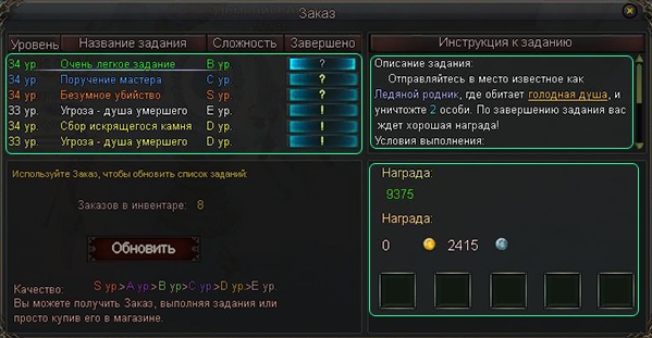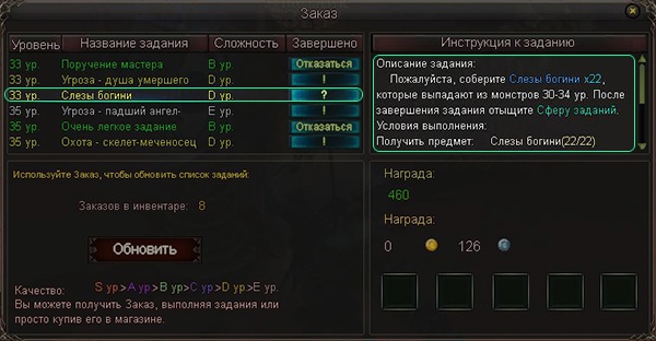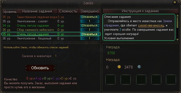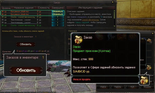 5. Не забывайте о том, что после выполнения одного из принятых заданий список квестов «Сферы заданий» полностью обновляется — это свойство можно использовать, если у вас нет свитков «Заказ».